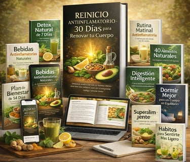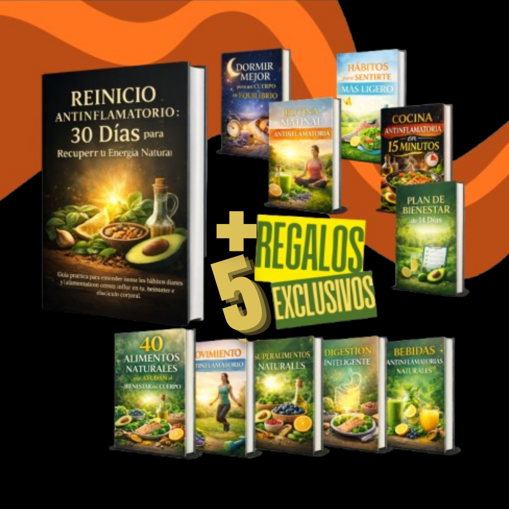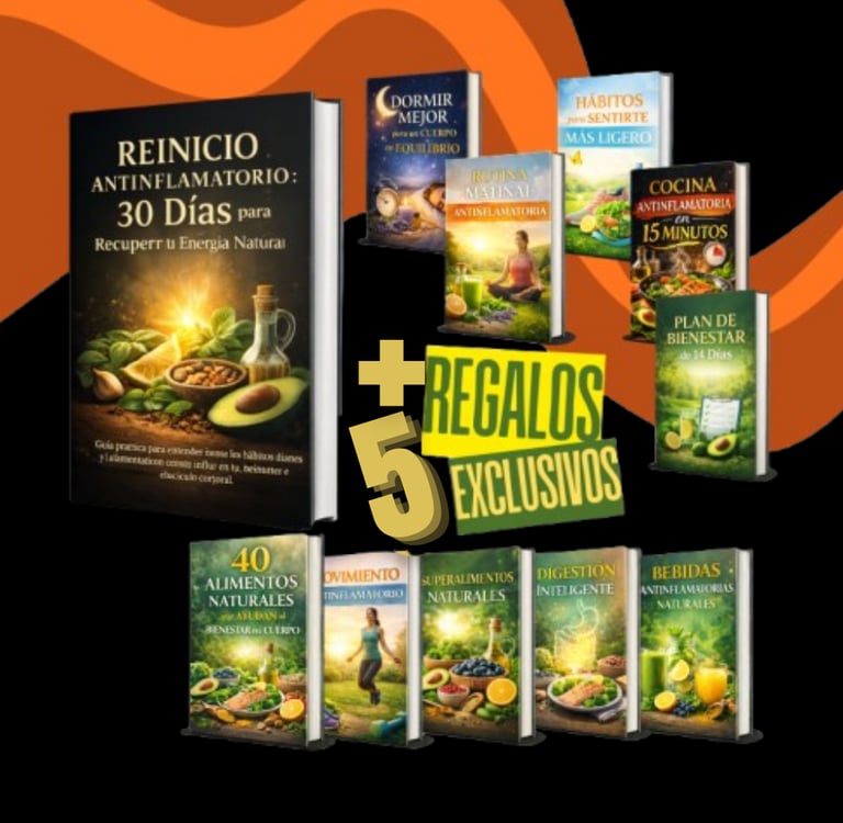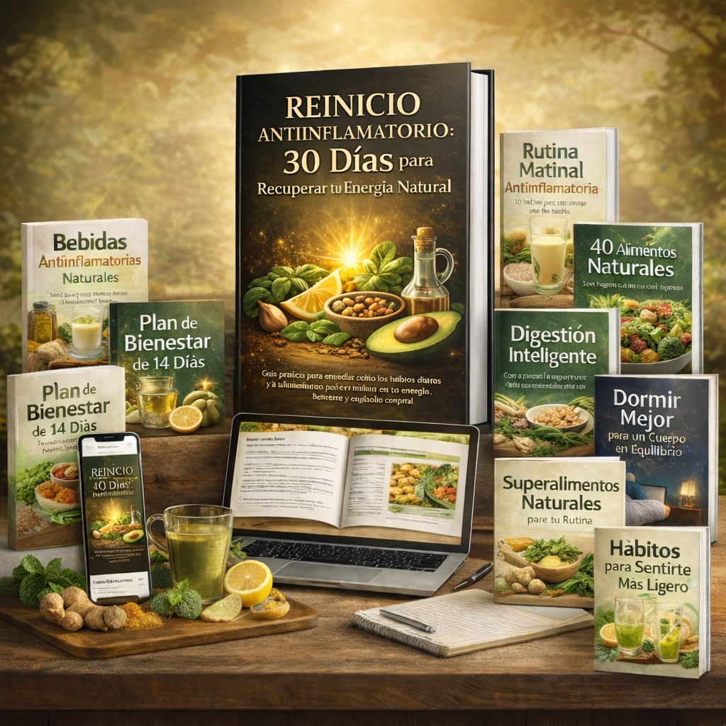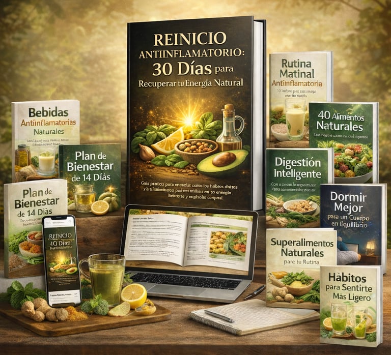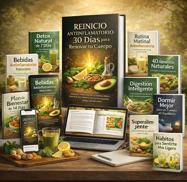 Reinicio Antiinflamatorio es una guía práctica diseñada para ayudarte a entender cómo la alimentación y los hábitos diarios pueden influir en tu energía, digestión y bienestar general.
